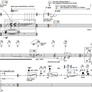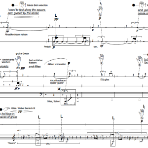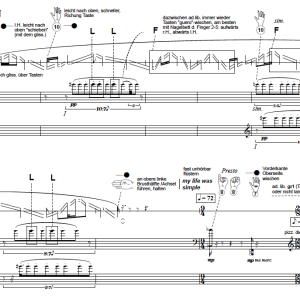 Das Werk lässt sich auch in diesem Sinne als virtuell bezeichnen, als es eine reale Aufführungs- performanz vortäuscht: Es existiert medial (in ursprünglicher Bedeutung also als Abbild) bereits vor seiner realen Uraufführung (d.h. ohne das „Original“ physikalischer Performanz). Die Interpret*innen einer Liveaufführung entscheiden auf Basis der präexistenten Fixed-media- Fassung, welche Elemente sie in eine Live-Interpretation gleichsam zurücküberführen. Torsohaft werden Abbilder (Samples) in Originale (Live -Aktionen) des Hier und Jetzt rückgewandelt. Diese Auswahl stellt einen skulpturalen interpretatorischen Akt dar. Dies entsteht, da im Werk ausschließlich unbearbeitete Klavierklänge und Geräusche der unmittelbaren Musikausübung alsSamples Verwendung finden, die fast alle ebenso live erzeugbar sind. Der Prozess der ursprünglichen Aufnahme wird gleichsam umgekehrt, indem die Aufnahme wieder in ein Original abgebildet wird (welches die Kopie imitiert).